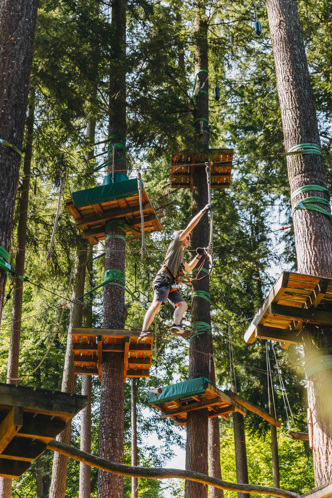 Das Klettern auf den Höhenparcours ist ab einer Mindestkörpergröße von 1,30 Metern möglich.
